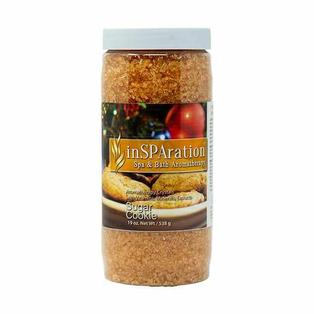 Sink into sweet, bakery-warm comfort. Sugar Cookie inSPAration Rx Crystals relax the body and calm the mind with an Epsom & sea-salt base enriched with Aloe Vera and Vitamins C & E—oil-free, non-foaming, and safe for all spas, hot tubs, and bathtubs.